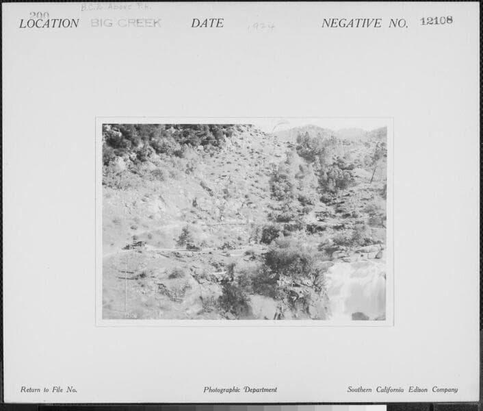 Big Creek PH #2 - [inclined railway above Powerhouse 2 at a point where the track turns and rollers guide the hoisting cable.]