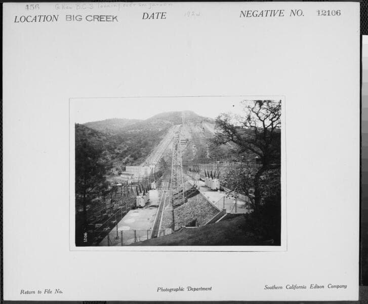 Big Creek Powerhouse #3 - General view of Big Creek PH #3 [and penstocks].