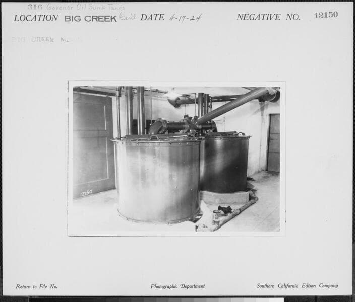 Big Creek Powerhouse #8 - Pumps & tanks for oil pressure governor control.