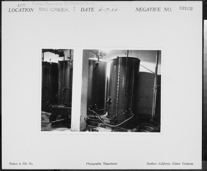 Big Creek Powerhouse #8 - Filter and spare Oil Tanks.
