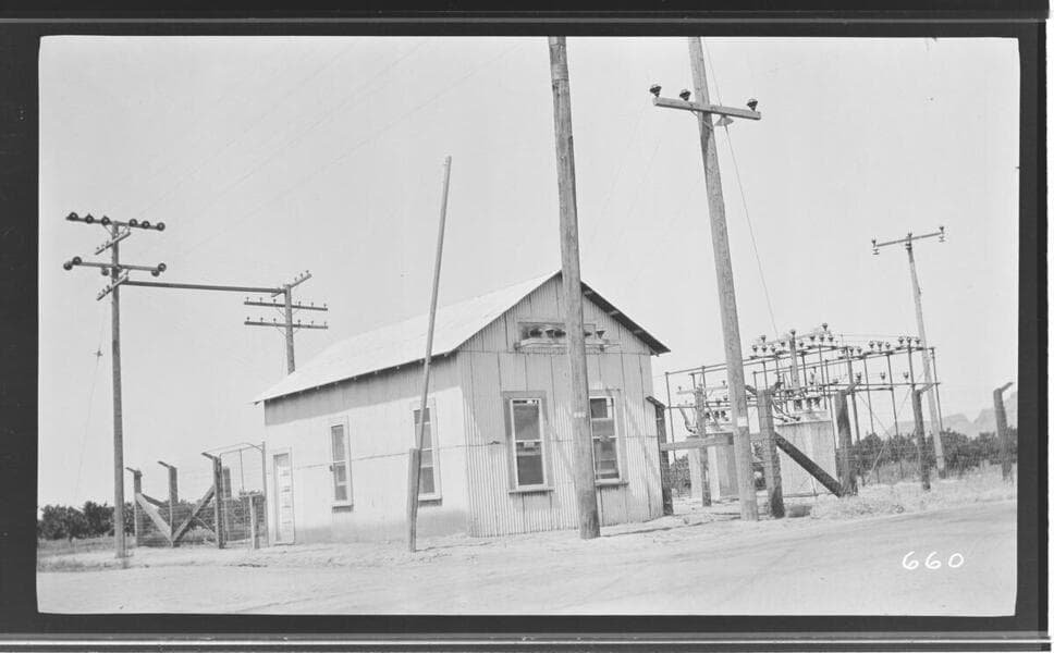 The exterior of Tulare Substation, showing transformers and distribution lines.