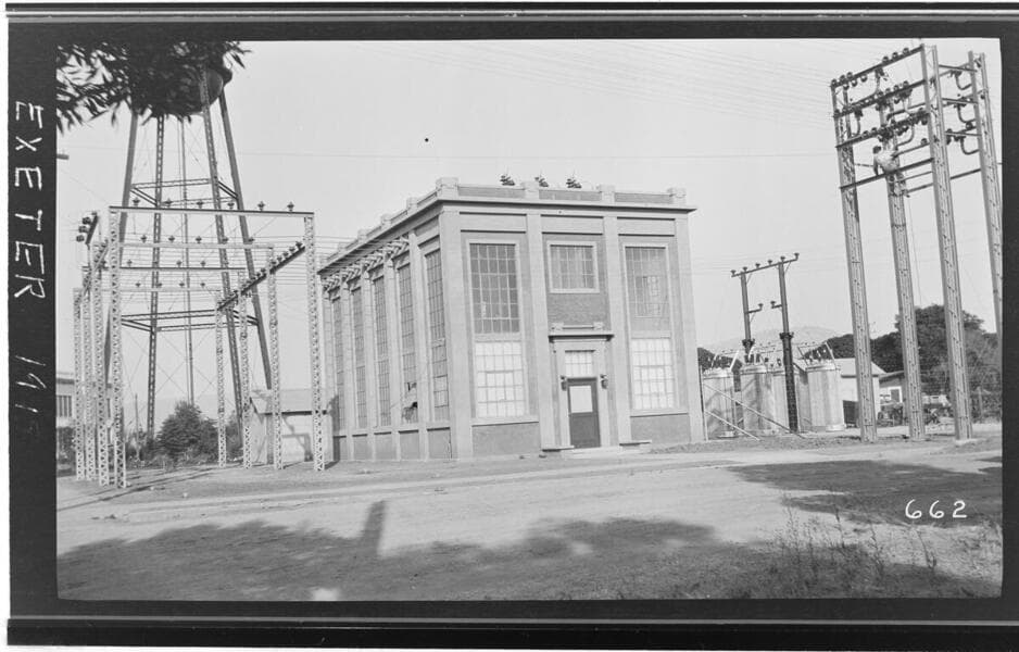 The exterior of the Exeter Substation, showing the distribution lines.