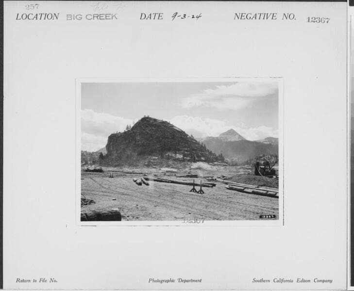Big Creek, Florence Lake Dam - View looking down Camp 62 Creek diversion pipe line from a point near intake.