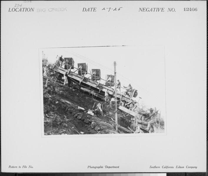 Big Creek PH #2 - penstock alongside inclined RR at Big Creek. Section 68 on car.