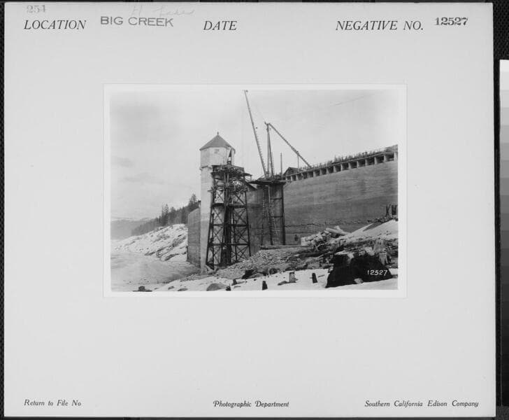 Big Creek Huntington Lake Dams - Progress on steel intake tower, Dam #1.