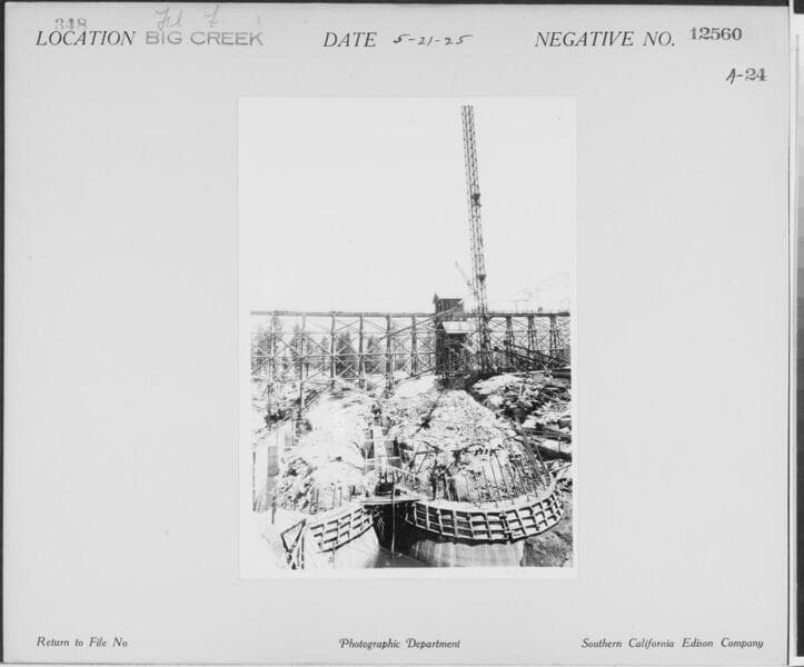 Big Creek, Florence Lake Dam - View of downstream angle of arches & buttresses under construction. [logbook data wrong]