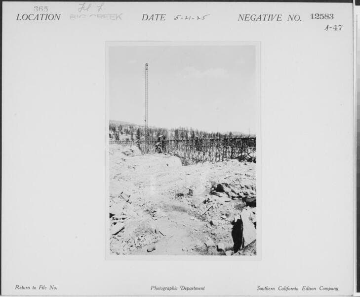 Big Creek, Florence Lake Dam - Construction at Florence Dam, with Insley Chute System.