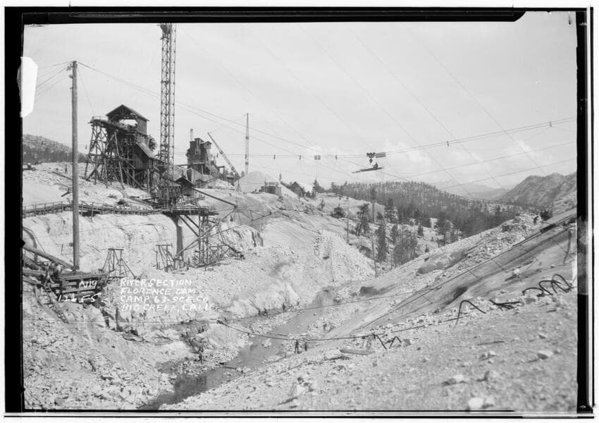 Big Creek, Florence Lake Dam - Construction work on dam - Camp 63.