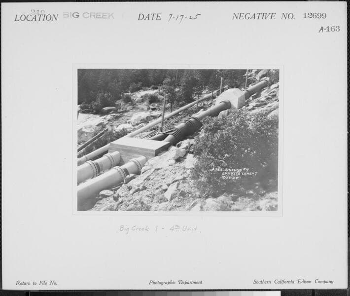 Big Creek Powerhouse #4 - Progress pictures (from Group 1) - Anchor block and penstock.
