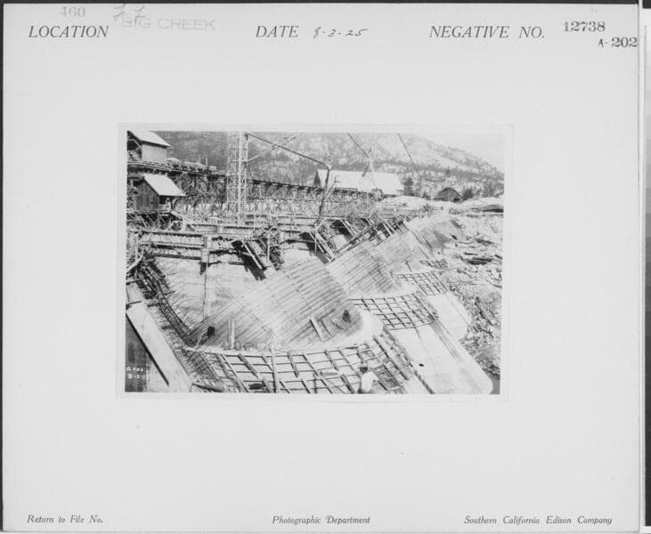 Big Creek, Florence Lake Dam - Close-up view [from west end] of form work on Arches and Buttresses