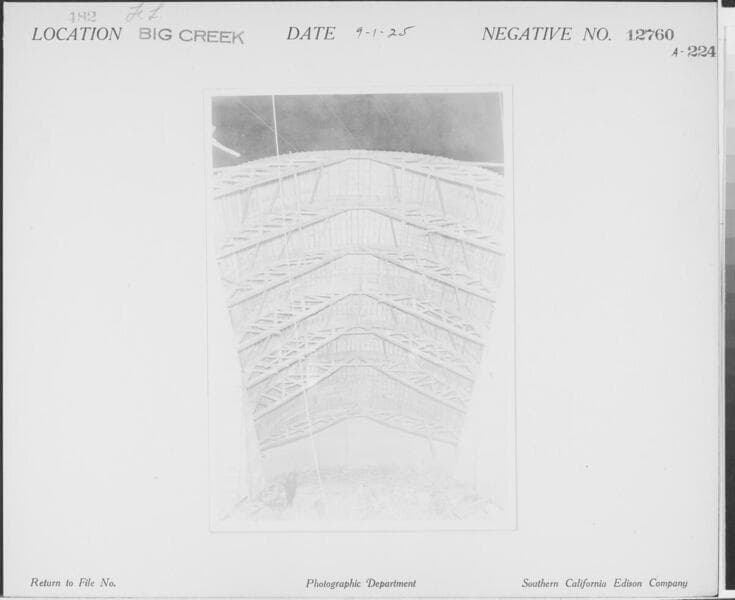 Big Creek, Florence Lake Dam - [method of wood forming on downstream side of arch (intrados)].