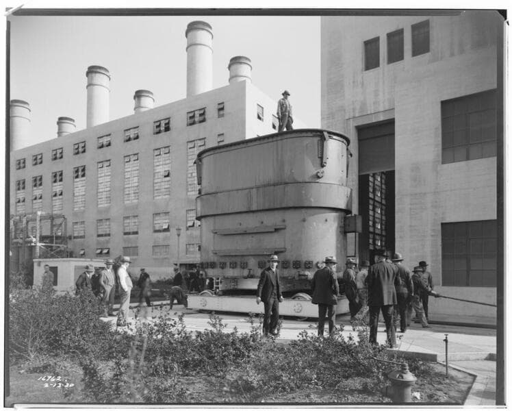 Long Beach Steam Station, Plant #3 - 17 ton Westinghouse Transformer on turntable.