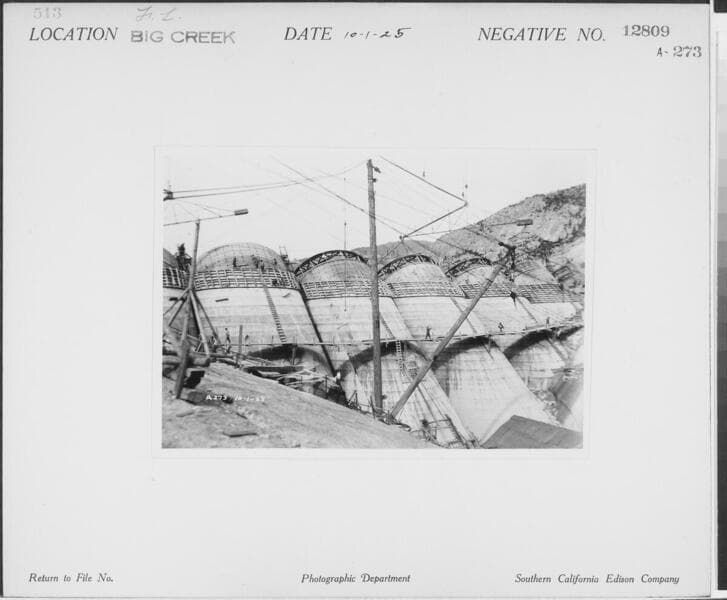 Big Creek, Florence Lake Dam - Upstream view of Buttresses and Arches in River Section.