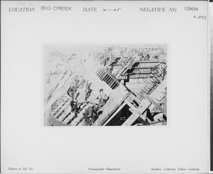Big Creek, Florence Lake Dam - Close-up view of form work on Arches and Buttresses.