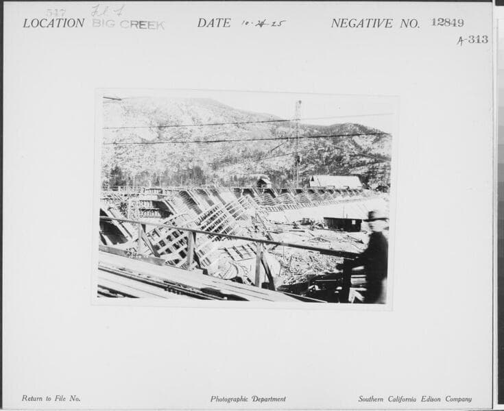 Big Creek, Florence Lake Dam - Looking toward Cement Warehouse.