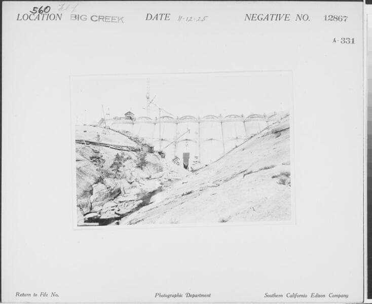 Big Creek, Florence Lake Dam - View of upstream side of dam at River Section.