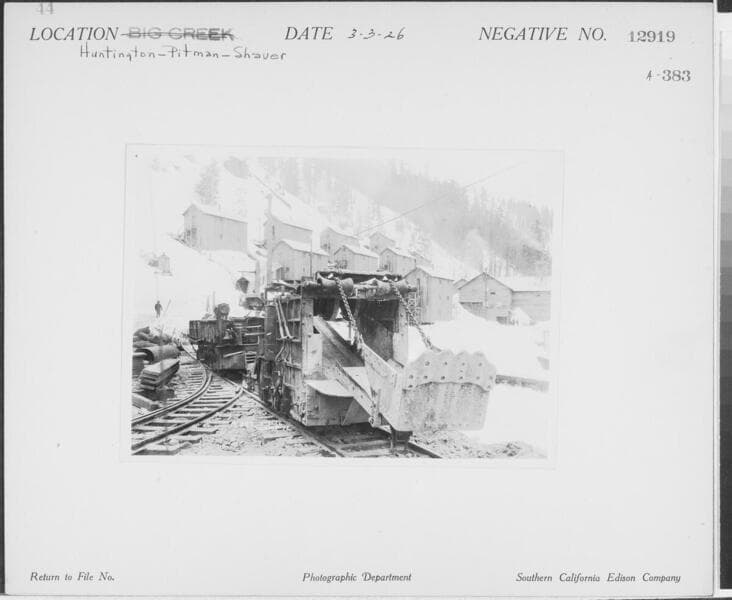 Big Creek, Huntington-Pitman-Shaver Diversion - Tunnel #7 Conway Mucking machine on tracks at Camp 72