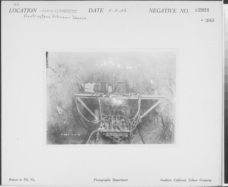 Big Creek, Huntington-Pitman-Shaver Diversion - Bucyrus Shovel and workmen in Tunnel [#7].