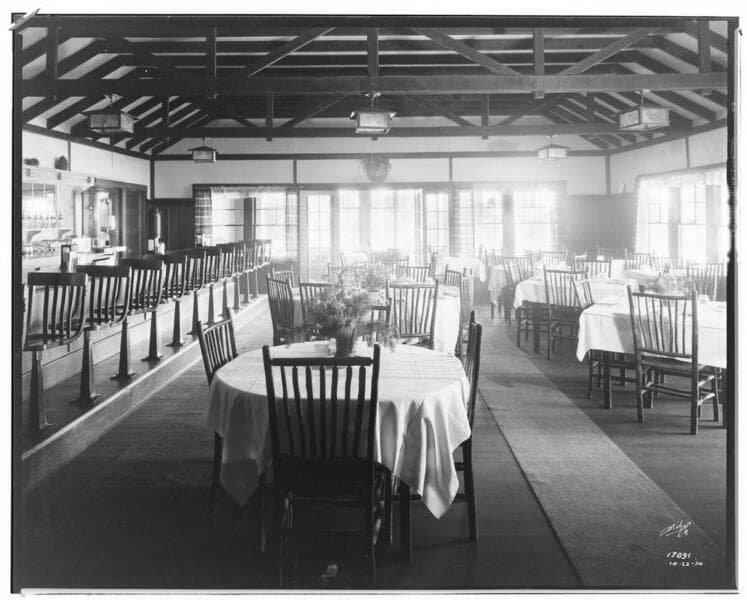 B1.1 - Buildings Miscellaneous - Mount Wilson Hotel - lobby counter and entryway to bar and dining room.