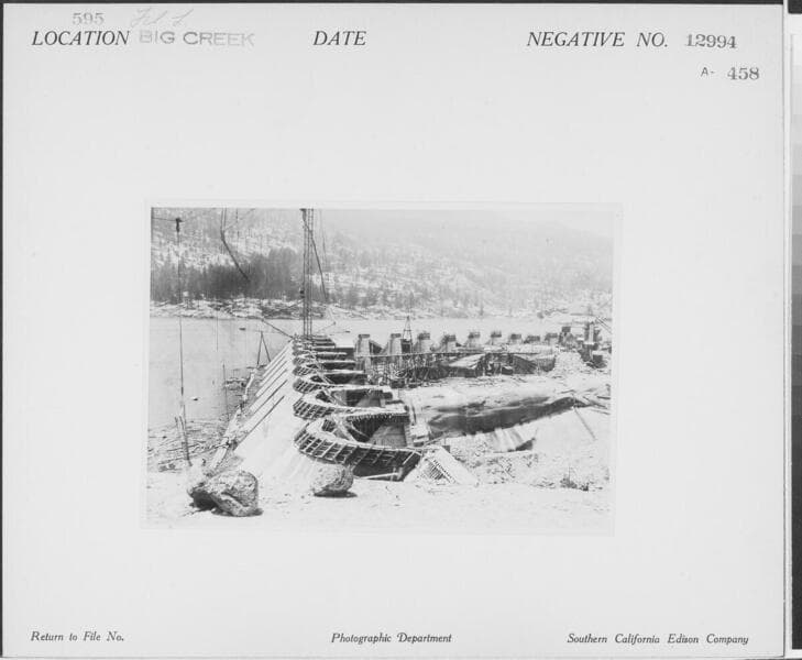 Big Creek, Florence Lake Dam - Upstream view of Buttresses and Arches in River Section.