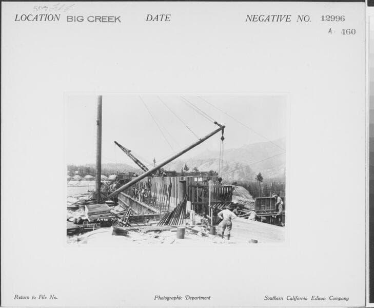 Big Creek, Florence Lake Dam - Pouring concrete at permanent spillway.