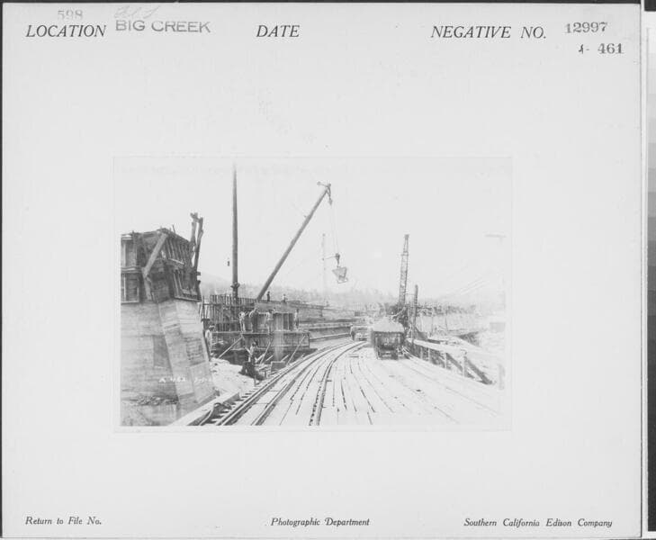 Big Creek, Florence Lake Dam - Pouring concrete at Florence Dam with Insley Chute System.