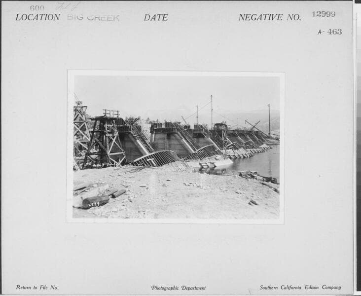 Big Creek, Florence Lake Dam - View of downstream angle of arches & buttresses under construction. [logbook data wrong]