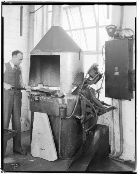 H1.1 - Heavy Duty Industrial misc. - Heat - man working at Electric Melting Pot & switchboard