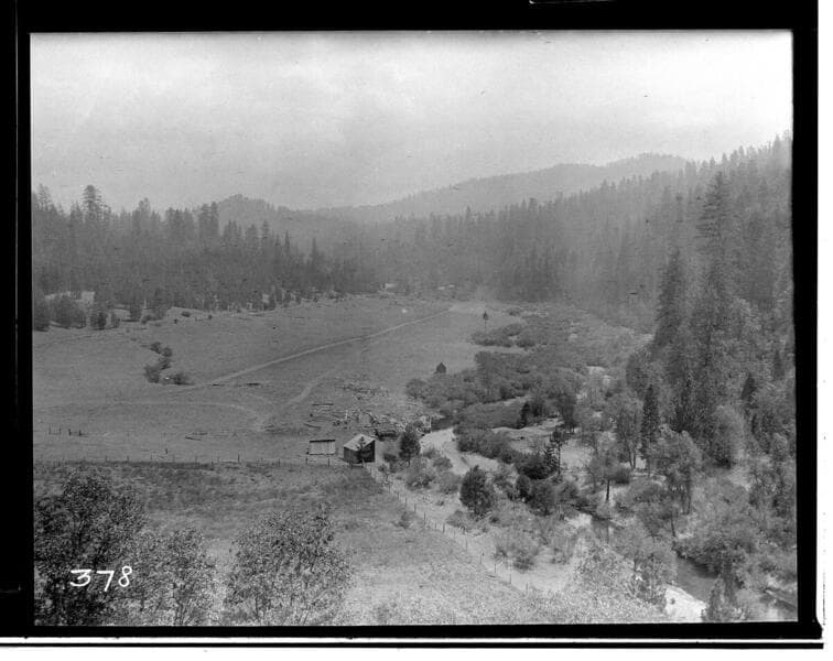Cabins at the edge of a grassy meadow. With 34 negs - No ID on any except that the container said: "Y.P.Co."