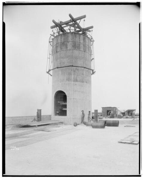 Long Beach Steam Station, Plant #3 - Erecting north stack.