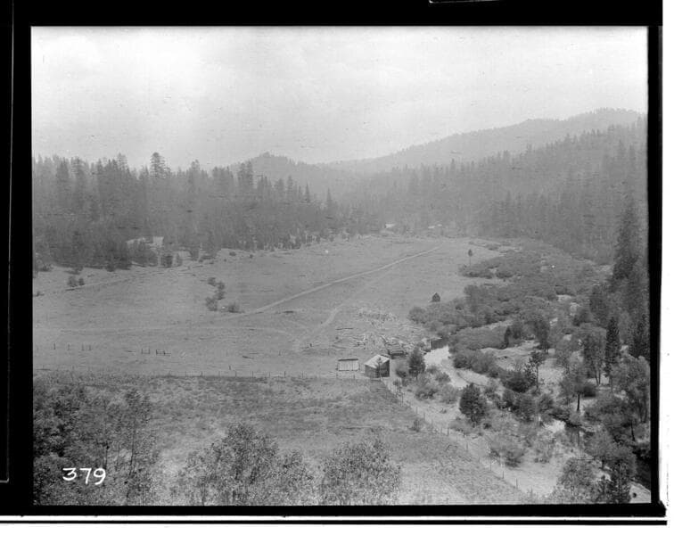 Cabins at the edge of a grassy meadow. With 34 negs - No ID on any except that the container said: "Y.P.Co."