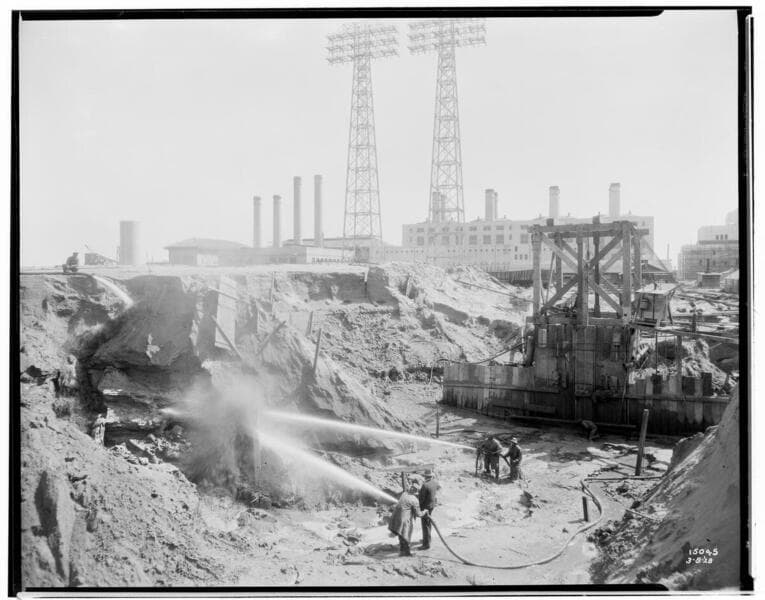 Long Beach Steam Station, Plant #2 - Washing out sand from piles in tunnel.