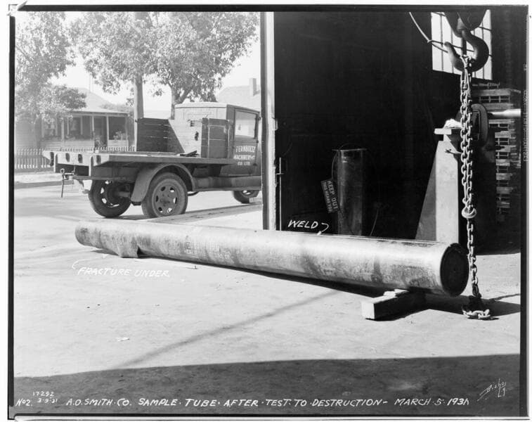 T2 Testing - Test on A.O. Smith Mech. Welded Steel Pipe for So. Fuel Co. #1 sample tube - fracture underneath.