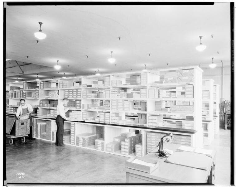 General Store, Warehouse - Interior of General Store, looking at front of shelving.