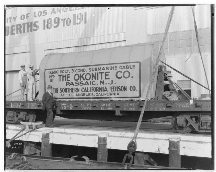 Distribution, Underground - Submarine Cable - loaded onto railroad cars at Wilmington.