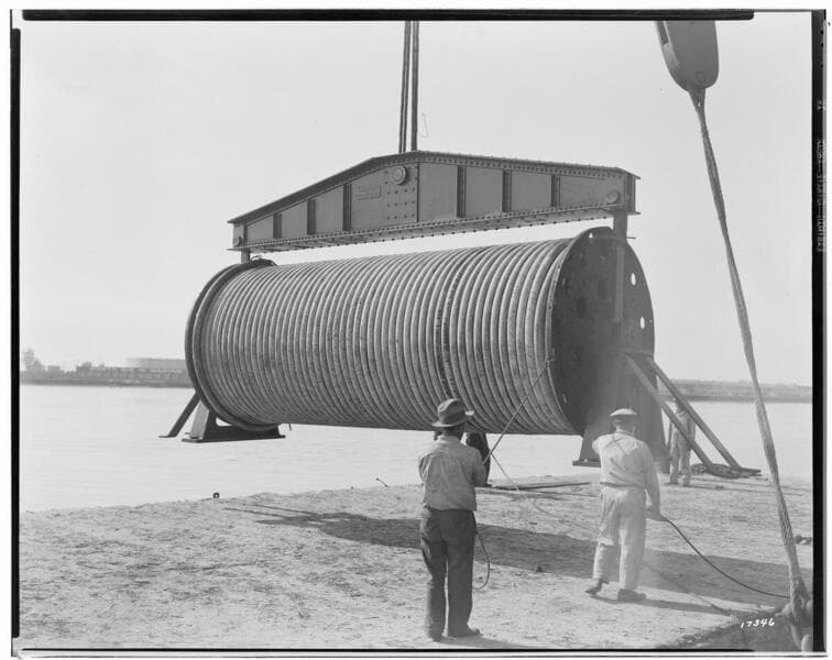 Distribution, Underground - Submarine Cable - Hoisting reel with special beam.
