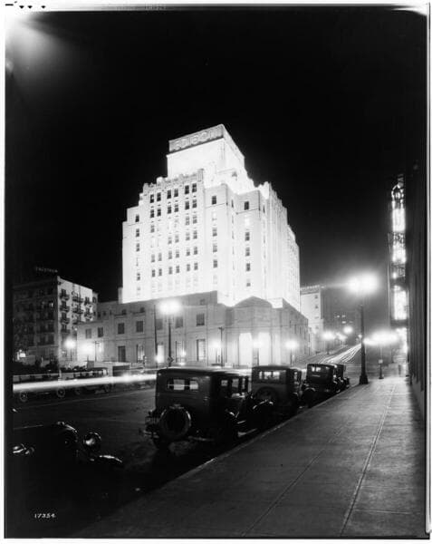 Night view of Edison Building (5th & Grand) - Lighting - Floodlighted 3am.