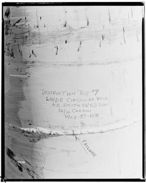 T2 Testing - Testing Equipment for Destruction Test No. 6 - Wolf. A.O. Smith Pipe failed at 1100 lbs/sq. inch.
