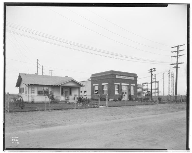 Inglewood Substation - Exterior - [Station Building with Rack in rear and Operator's Cottage on the right].