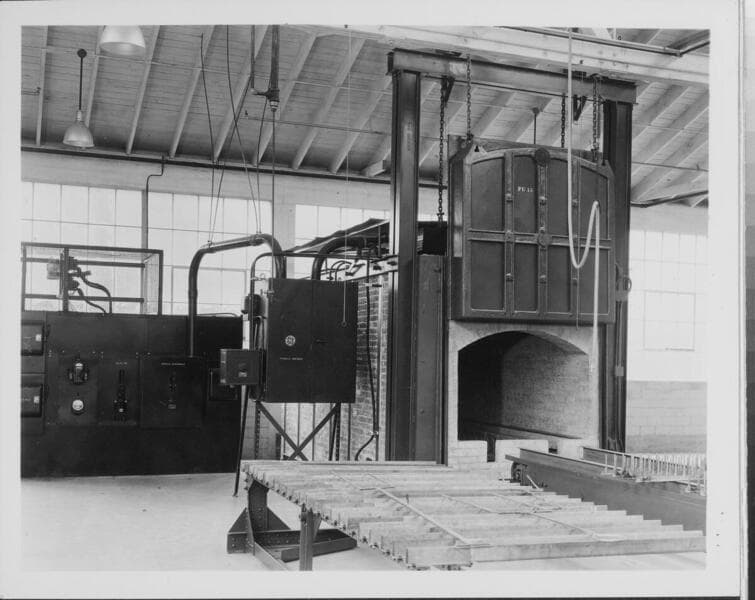 H1.1 - Heavy Duty Industrial misc. - Electric furnace at Hotpoint plant. [furnace door open].