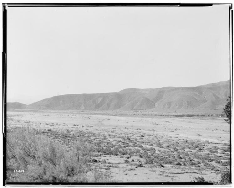 A1.6 - St. Francis Dam Disaster - Looking northwest across river wash toward Edison Construction Camp (Kemp Camp).