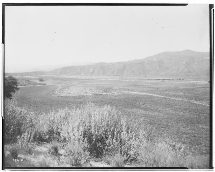 A1.6 - St. Francis Dam Disaster - Looking northwest across river wash toward Edison Construction Camp (Kemp Camp).