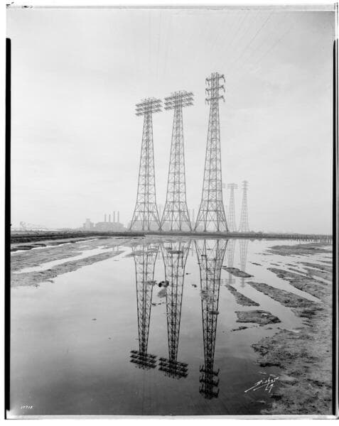 Long Beach-Lighthipe-Laguna Bell Transmission Line - Long Beach Steam Station, Plant #3 - Crossing towers.