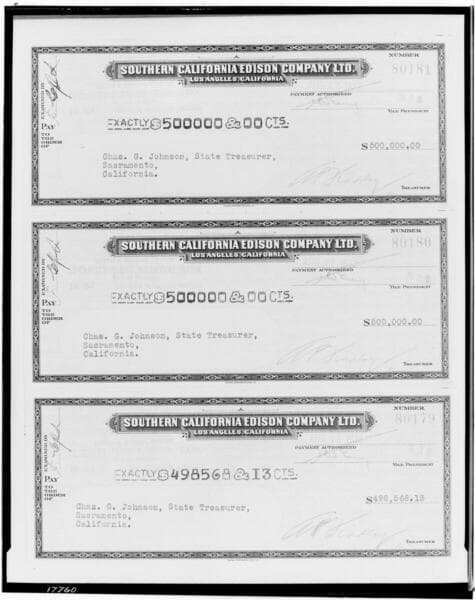 C1.4 - Checks - Copy of check for SCE taxes, first half, 1929 [$1,296,357.19]