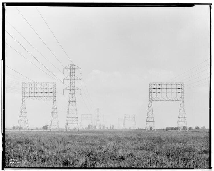 Long Beach-Lighthipe-Laguna Bell Transmission Line - Long Beach Steam Plant #3 - Tall transmission towers west of plant.