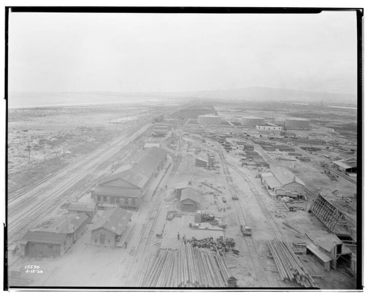 Long Beach Steam Station, Plant #3 - General view of yards looking west from top of Plant #3.
