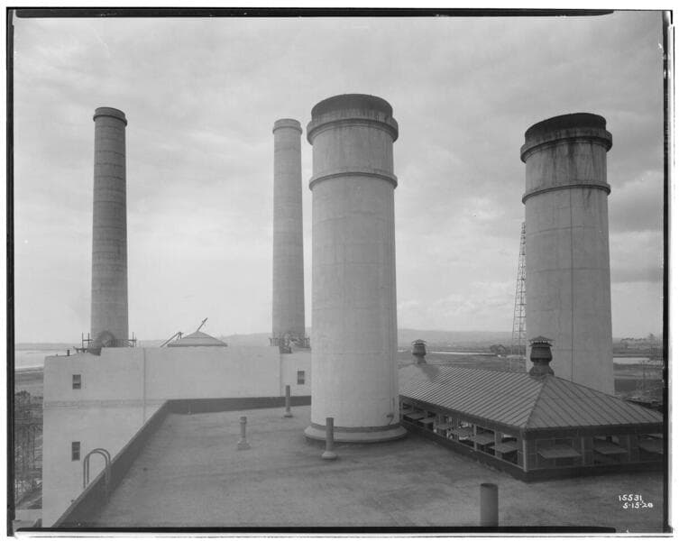 Long Beach Steam Station, Plant #1 - progress on stacks 3 & 4.