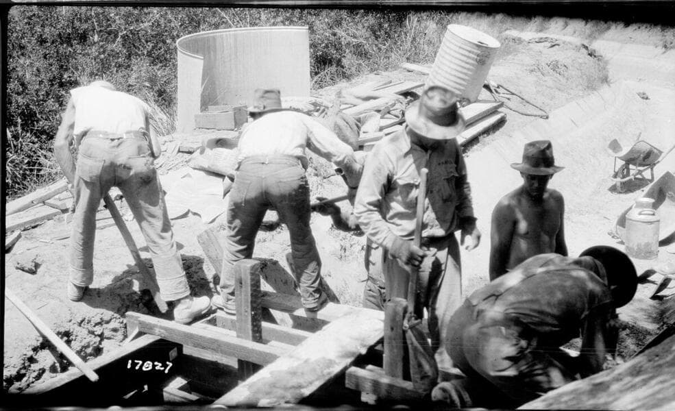 Tule River Powerhouse - Rebuilding Flume Line - construction site.