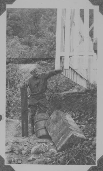 San Gorgonio Hydroelectric - After storm - Shows relation of felled tree to Transformer foundation before felling tree.