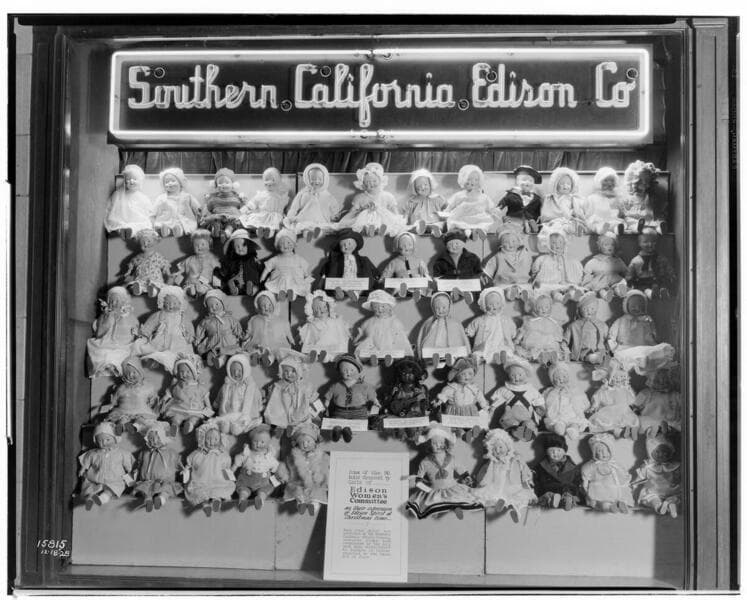D2.3 - Displays, Window - Christmas dolls. Edison display window with contest dolls for needy children.